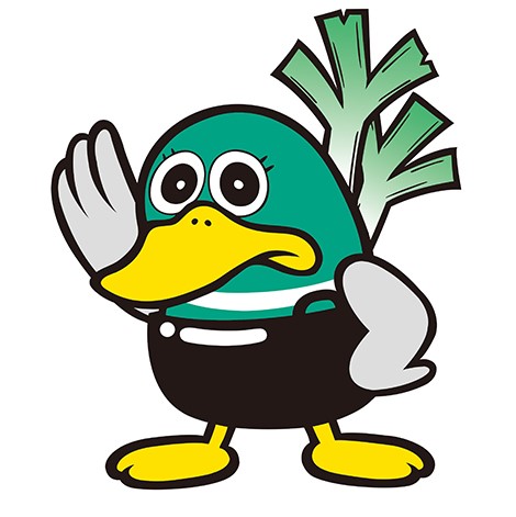越谷ねぎを背中に挿して鍋に入った独特の装いと哀愁ただよう表情が特徴。ご当地グルメ「こしがや鴨ネギ鍋」のようにグツグツとアツい心で、越谷市の魅力をPR! -