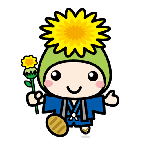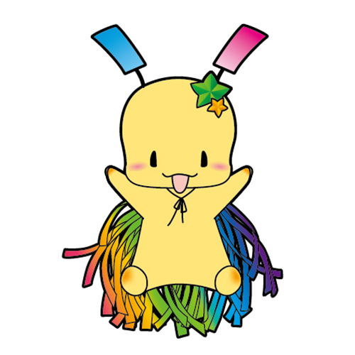 顔はゆずで、流鏑馬で使用している烏帽子を被っています。頭には町の特産である「ゆず」の葉っぱを付け、胸には輪切りにした「ゆず」と町の花「菊」をイメージしています。背中には弓と矢を背負い、矢は町の特産のゆずの葉っぱになっています。 -