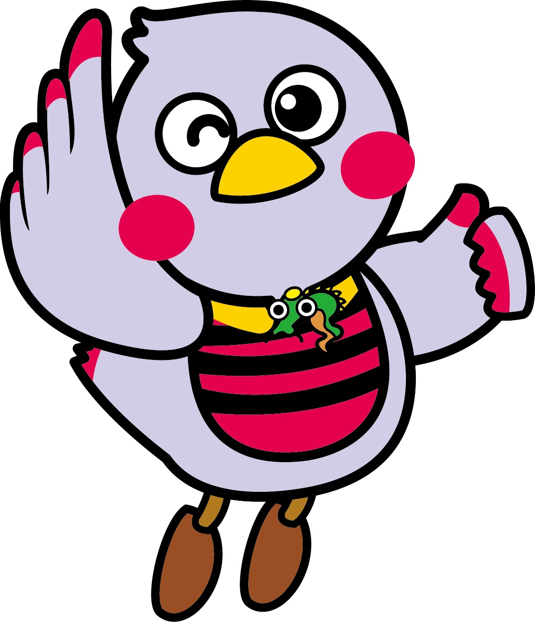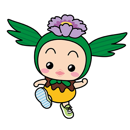 町の鳥である「鳩」をモチーフに、町の花である「つつじ」がチャームポイント!鳩山の「ハート」と音の調子の「トーン」を合わせた3歳の女の子「はーとん」です。 -
