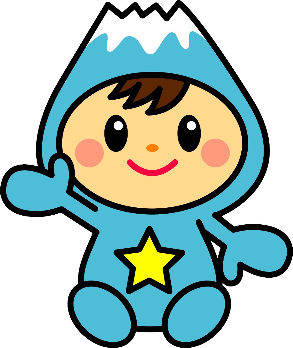 天然記念物「しだれ桜」の花びらの妖精です。富士山ビュースポットから見える富士山を頭に、毎年8月に開催される、七夕まつりの飾付けをイメージした色とりどりのスカーフをつけ、ふじみ野市の特色てんこ盛りの愛らしいキャラクターです -