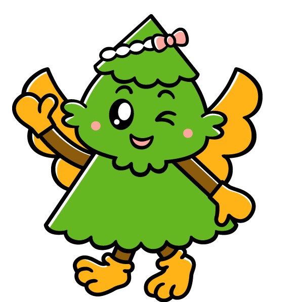 杉(町の木)と、鷲(町の形)からデザインされ、きらきらした大きな目と一生懸命手を振る姿、ふわふわした羽根がポイント。かわいい杉の木が今にもぴょんぴょんと跳ね回っていく様子から、「すぎぴょん」と名づけられた。 -