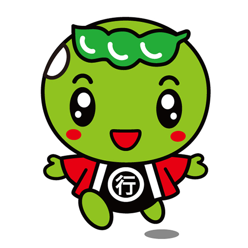 行田豆吉は行田市内で古くから栽培されていた「行田在来青大豆」のイメージキャラクター。青大豆の特徴である青みがかった顔とおでこの莢(さや)がトレードマークです。 -