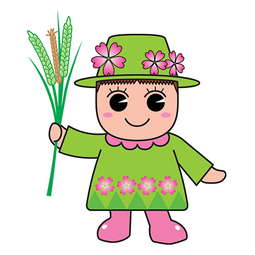 坂戸市をPRする使命を背負った自称桜の妖精で、おしゃれが大好きな女の子。首や腕に市の野菜ルーコラを、しっぽにすいおうをつけている。 -